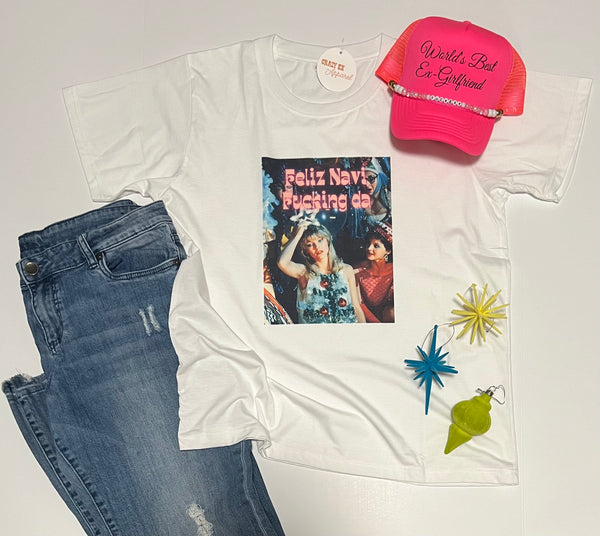 Own the holiday season with attitude. The Feliz Navi Fucking Da Tee blends vintage holiday flair with festival-ready comfort — handmade in small batches.